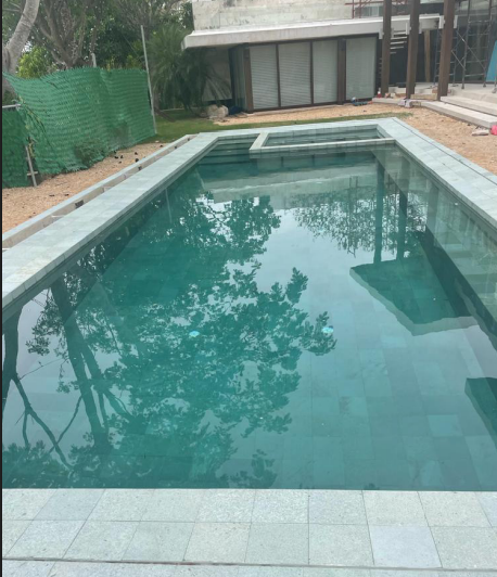 Construcción, instalación de equipos, suministro de material, instalación de recubrimiento, lámparas e instalación hidraúlica.Acabado: Mosaico Veneciano